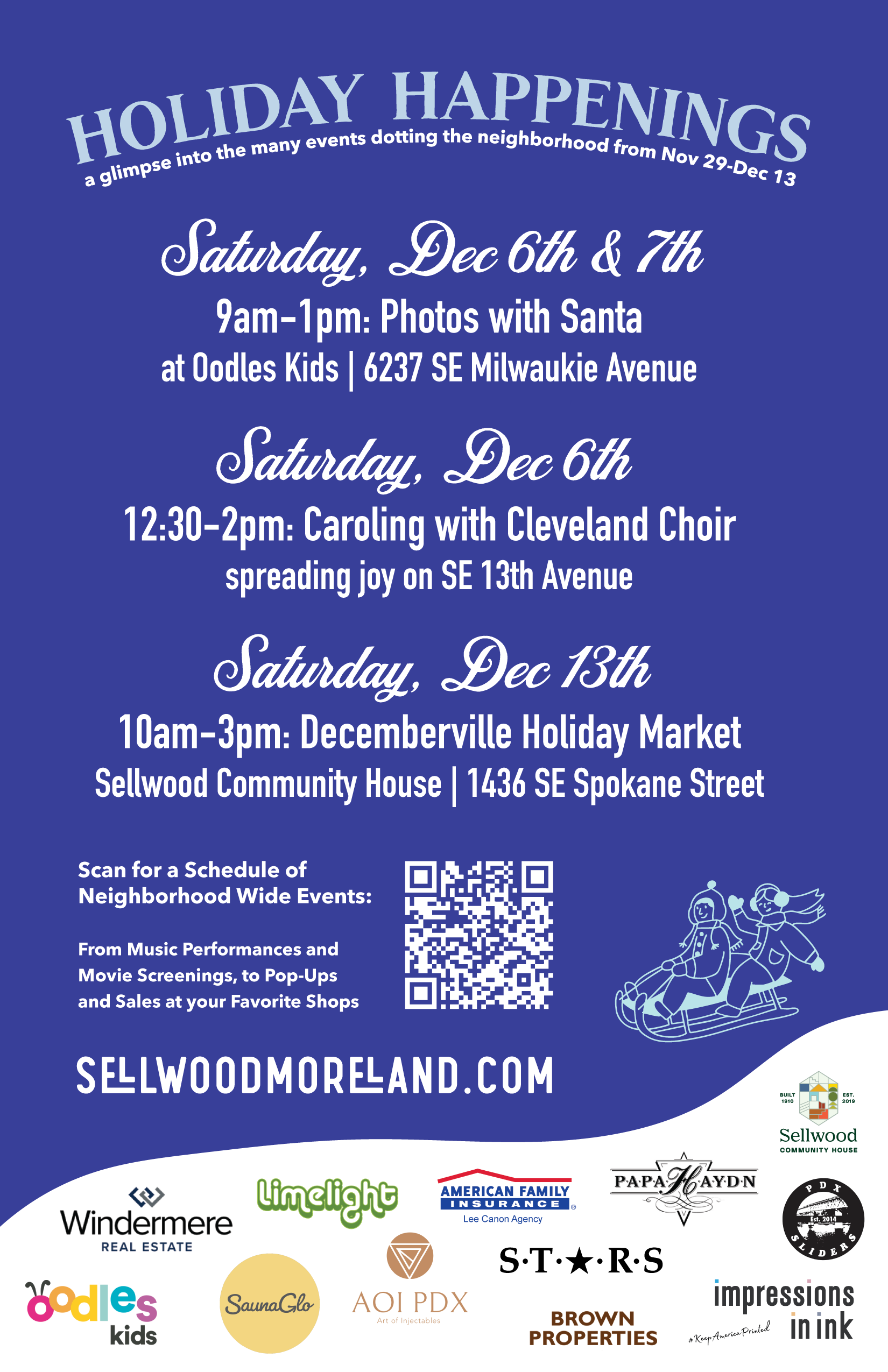 The Winter Window Walk alone is worth the visit to Sellwood Moreland! But check out our listing of events and happenings over the 15 days. From Holiday Markets to Photos with Santa, there is just so much more to do and see while you are here.